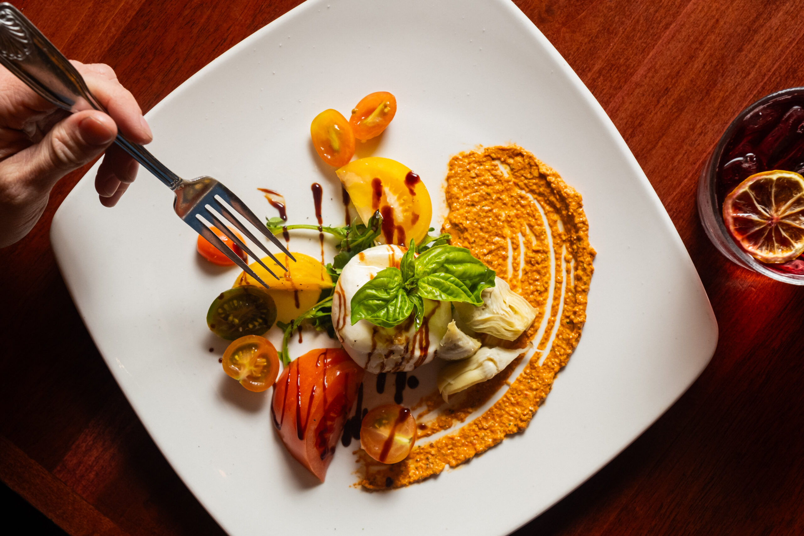 Heirloom tomato, aged balsamic, artichoke, roasted bell pepper pesto